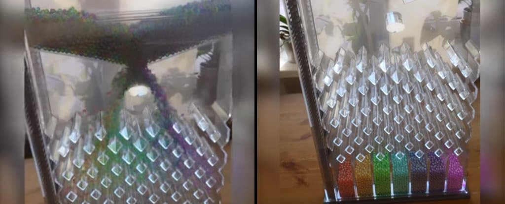 “Here’s what a few of you guys asked for: Galton box, now with coloured beads,” wrote the author.