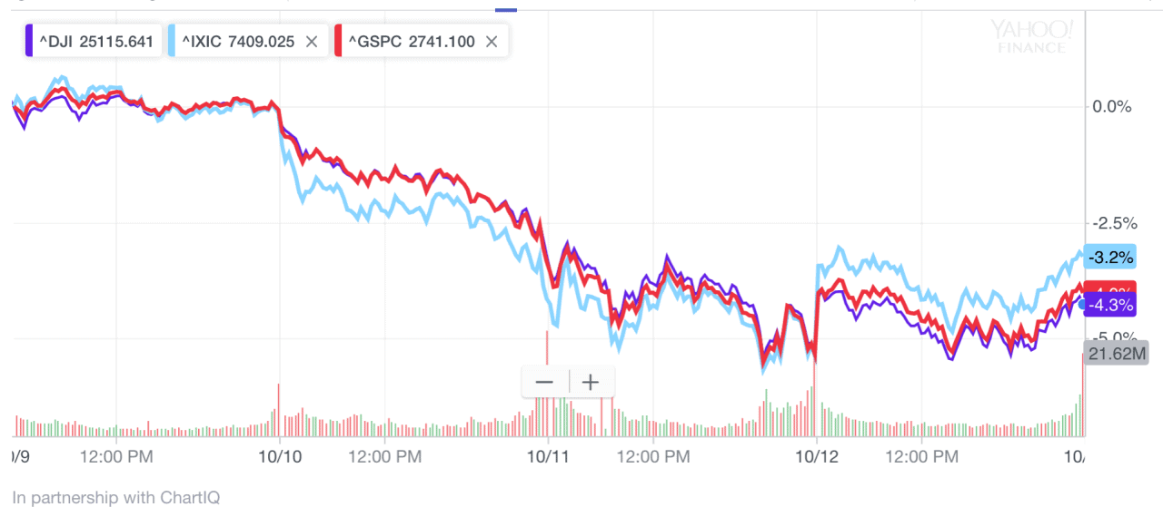 The Dow and S&P 500 dropped in excess of 3% on Wednesday and another 2% on Thursday. Over those two days, the Dow lost more than 1,300 points. Through Thursday, stocks were looking at their worst start to October since the financial crisis.