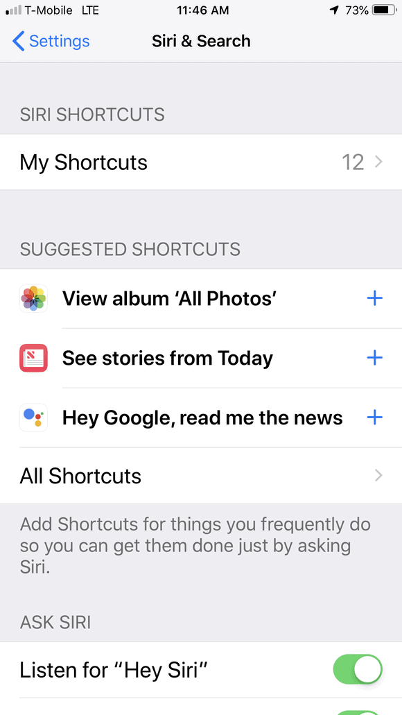 One of those options Apple is the ability to record yourself saying, “Hey, Google,” in the same manner as you would do with Siri. The phone automatically goes to the Google Assistant app, (which you’ll need to have, if you haven’t already) and the Google microphone is cued, awaiting your query.