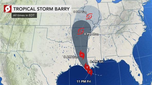 Barry’s flooding rainfall to have much more impact than a typical Category 1 hurricane or tropical storm