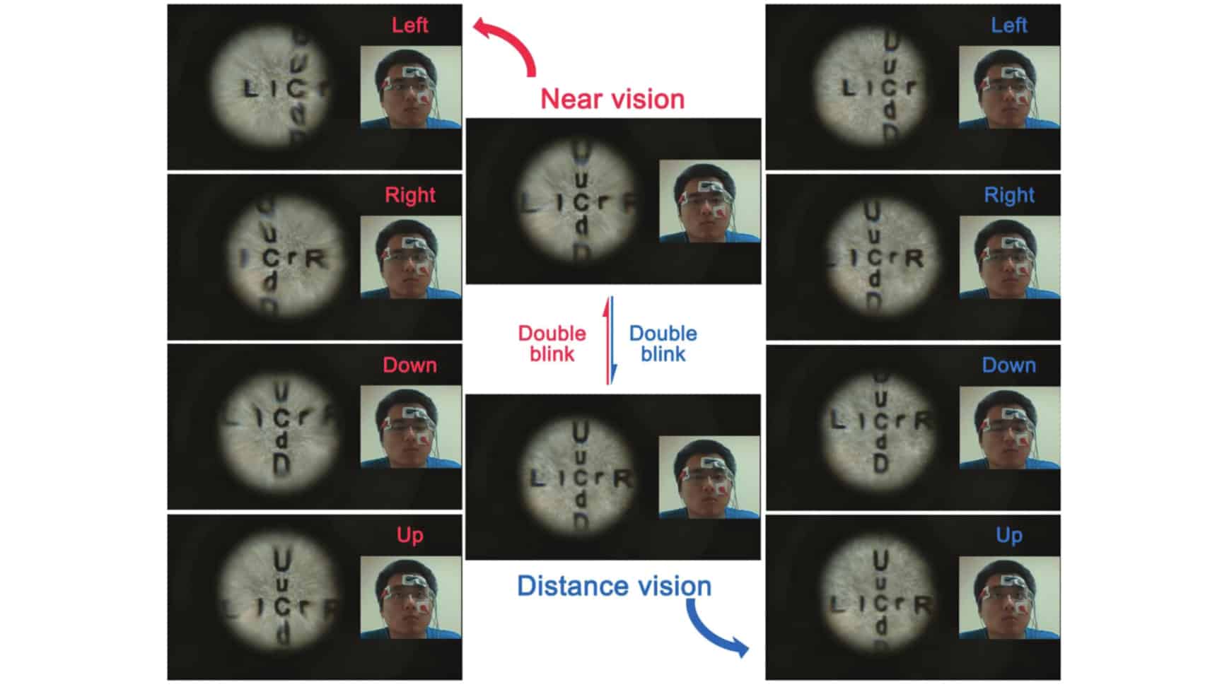 There are two parts to the new contact lens, as detailed in a recently published paper, “A Biomimetic Soft Lens Controlled by Electrooculographic Signal.” The first is the lens itself, which mimics how the lens in the human eye works. Instead of organic tissue, it’s made from layers of stretchy polymer films that change their structure when an electrical current is applied. In this case, wires deliver electricity from an external power source which causes the layers to either expand, reducing the lens’s thickness, or contract, which has the opposite effect. (Imagine a squishy ball getting thinner as you squeeze it.) In either behavior, the focal point of the light passing through the artificial lens is altered, which defines what in front of the lens appears in focus.