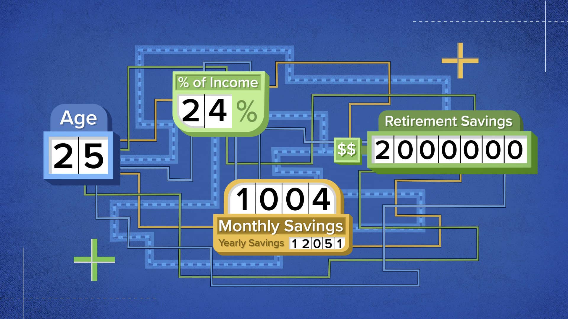 Just a few things to remember: These numbers assume you have no money in your retirement plan, that you will get a 6% return on your investments and that you will retire at age 65.