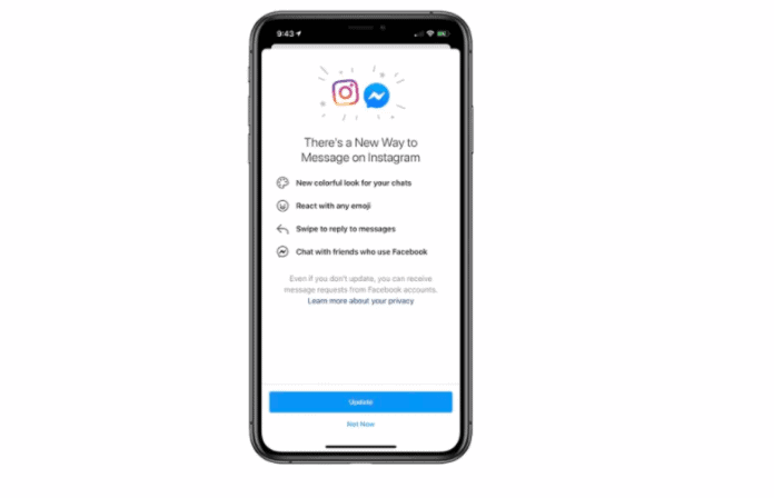 Facebook appears to flipping the switch on integrating the chat systems for Instagram and Messenger. On Friday evening, several editors at The Verge across the country — on both iOS and Android devices — noticed an update screen popped up in Instagram’s mobile app with the message “There’s a New Way to Message on Instagram” with a list of features including a “new colorful look for your chats,” more emoji reactions, swipe-to-reply, and the big one: “chat with friends who use Facebook.”