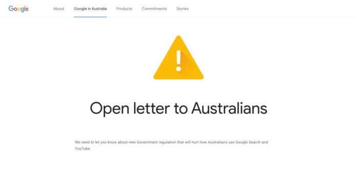 Google users in Australia today are now seeing the following prompt with a link to an open letter: