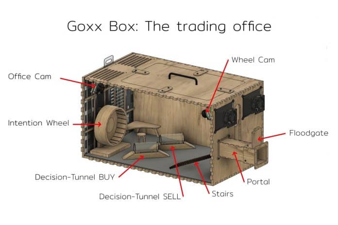 According to Mr. Goxx’ Twitter, the hamster’s portfolio is up over 20% in that time and involves real money and quite possibly the most technologically advanced hamster cage in existence. On any given day, the hamster will enter its “Goxx Box” — a separate office in its home that houses an “intention wheel” that is wired to about 30 different cryptocurrencies. Once it makes its decision, Mr. Goxx will then enter one of the “two decision tunnels” that determines whether to buy or sell a certain trade.