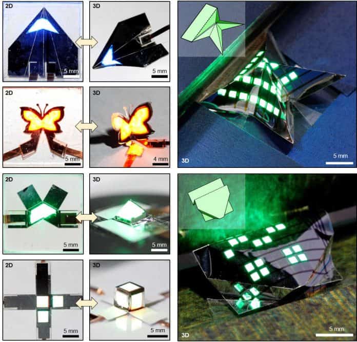 Researchers at the Institute for Basic Science Nanoparticle Research Center (h/t: Maeil Business) announced a QLED 3D foldable display that allows users to fold it like origami. Some of the shapes shown off by the research team include pyramids, butterflies, and a paper airplane.