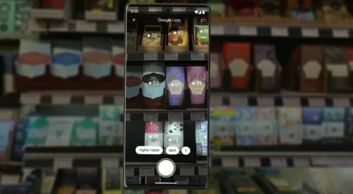 Google’s example demo of the feature was shelves of candy bars, which Lens overlaid with information including not just the type of chocolate (for example, dark) but also their customer rating.