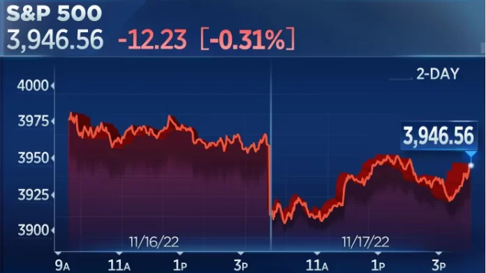 Stocks rebounded from lows reached earlier in the day as shares of Cisco Systems jumped nearly 5%. The networking equipment company surpassed expectations in its fiscal first-quarter report, and issued upbeat guidance. Other tech stocks such as Apple and Intel also climbed.