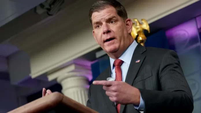 U.S. Secretary of Labor Marty Walsh recalled how his father, a construction worker, retired with a pension and annuity that has enabled his mother to remain financially stable when he died.