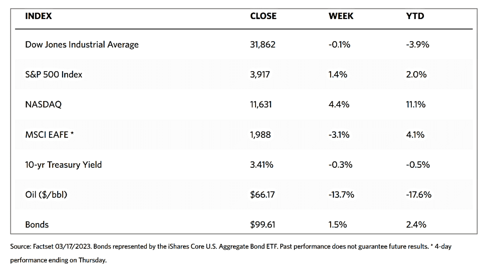 The lack of direction in the markets reflects the crosscurrents of the banking sectors’ stressors, concerns of a likely harder economic slowdown soon, and speculation that the Federal Reserve will now be compelled to temper or possibly pause their rate-hiking cycle. Within the S&P 500, industry sector returns varied widely. Communication services and technology shares recorded strong gains as evidenced by the Nasdaq surge, while the financial and energy sectors succumbed to significant losses. Performing especially well in this environment were the mega-cap tech shares that generate significant free cash flow that have minimal exposure to the regional banks. The large-cap growth stocks outperformed the value stocks by 580 basis points or 5.80 percentage points.