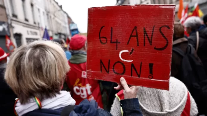 French citizens have taken to the streets to protest a pension retirement age increase to 64 from 62.