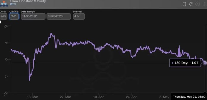Bitcoin’s (BTC) options market is showing bias for weakness over six months for the first time since early March as the U.S. debt ceiling drama continues.