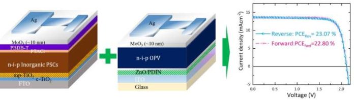 Researchers at Chonnam National University in South Korea recently introduced new monolithic perovskite hybrid tandem solar cells based on all-inorganic halide perovskites. These solar cells, introduced in a paper in Energy & Environmental Science, have achieved promising efficiencies of 23%.