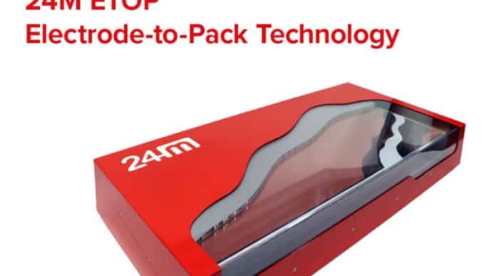 Then late last year, 24M announced it had designed a radical new way of manufacturing its batteries that it called electrode to pack, “The 24M Electrode To Pack (ETOP) system is a streamlined battery pack system that features electrodes packaged directly into the battery pack, removing the need for individual cells and modules,” the company said.