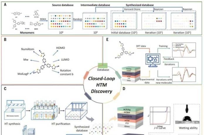 An international team of scientists has used machine learning to help them develop perovskite solar cells with near-record efficiency. In their paper published in the journal Science, the group describes how they used the machine-learning algorithm to help them find new hole-transporting materials to improve the efficiency of perovskite solar cells.
