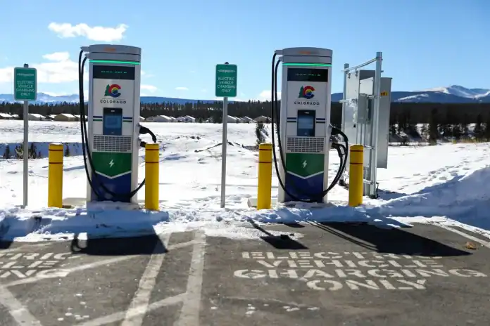 The site is also Colorado’s first charging location funded by the National Electric Vehicle Infrastructure program, a $5 billion federal initiative to build chargers along highways nationwide. Colorado has planned to leverage the funding to build around 60 similar charging locations over the next two years, according to a press release sent by the Gov. Jared Polis’ office in early January following the opening of the Frisco charging plaza.