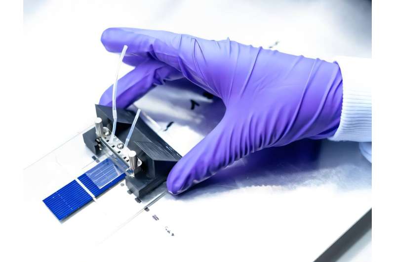 An international research team led by the Universitat Politècnica de Catalunya—BarcelonaTech (UPC) has created a hybrid device that combines, for the first time ever, molecular solar thermal energy storage with silicon-based photovoltaic energy. It achieves a record energy storage efficiency of 2.3% and up to 14.9% total solar energy utilization.